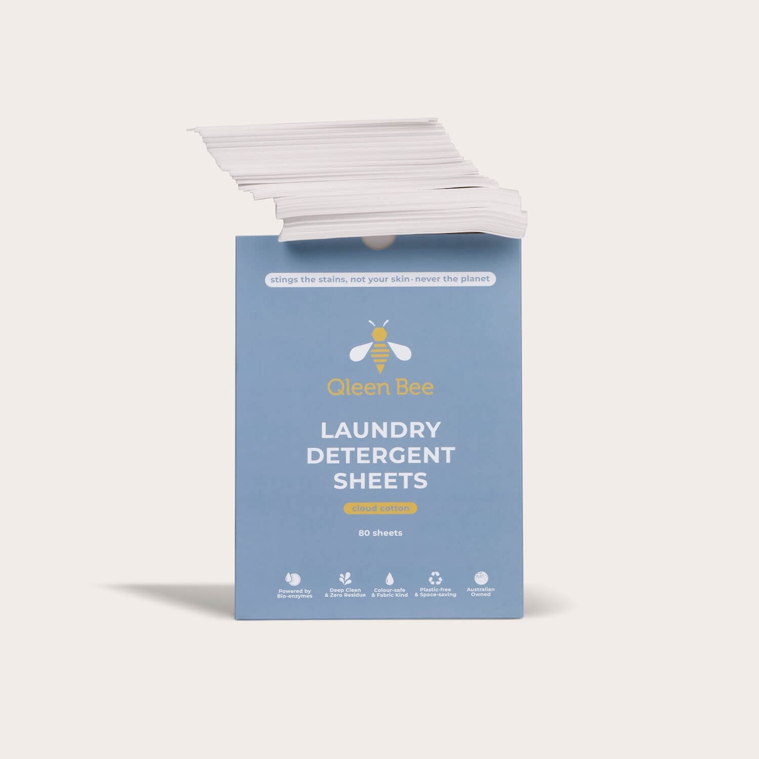 Qleen Bee’s laundry sheets are tough on stains, light on waste, and effortless to use. Packed with plant-based power and active enzymes, each sheet dissolves in seconds and leaves your laundry fresh, soft and clean with no measuring, no mess, and no plastic jugs.